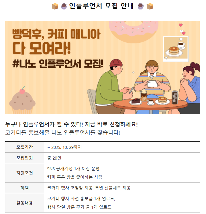 [코커디 시즌2] 빵덕후, 커피매니아 다 모여라~! 인플루언서 모집